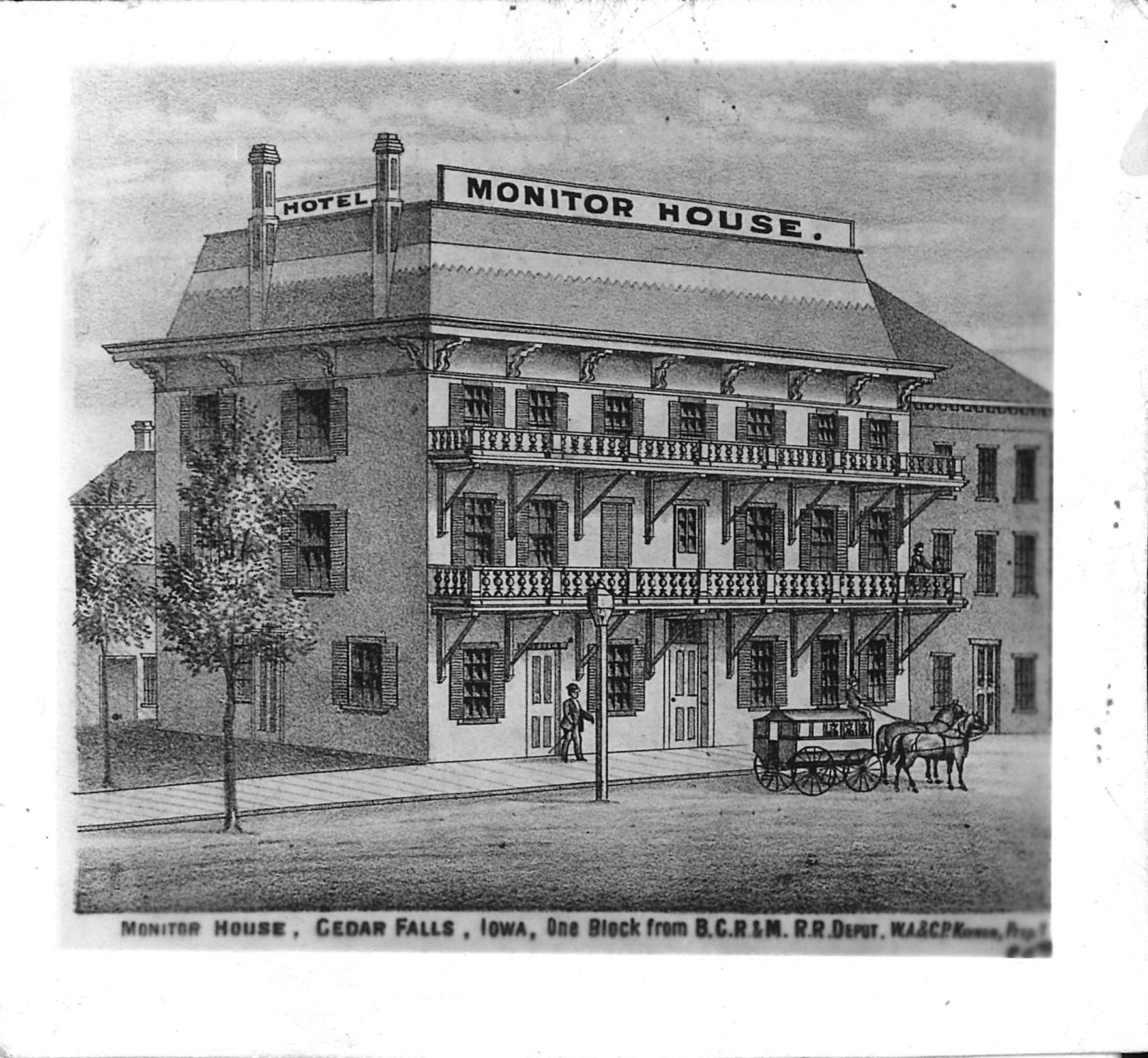 The Monitor House, Cedar Falls, Iowa. Established before 1873; burned down 1885.