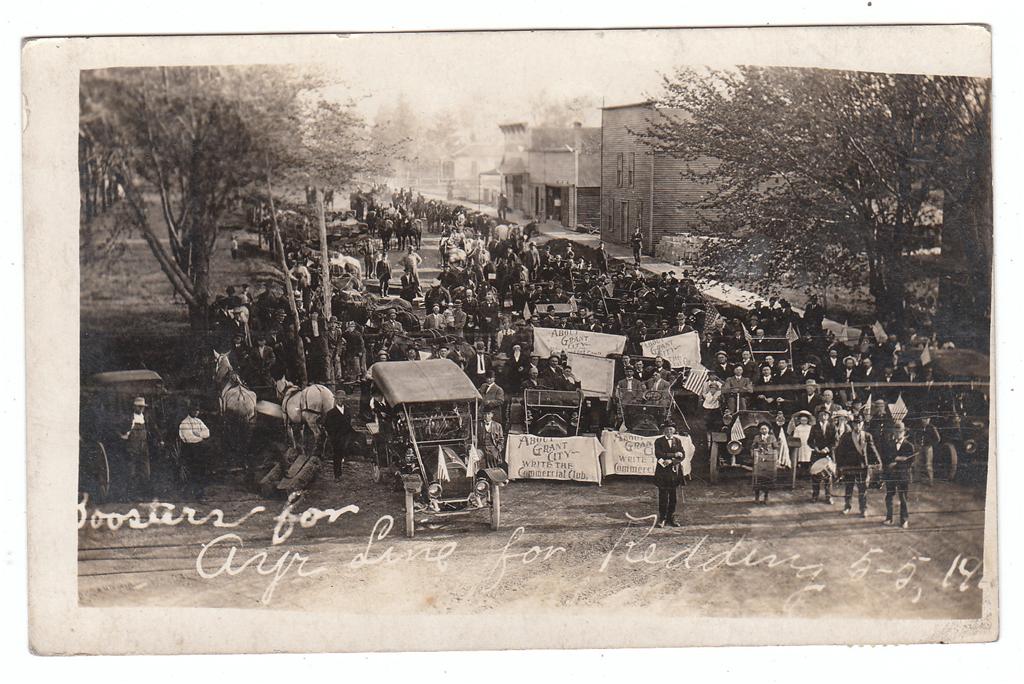This photograph was taken during a Good Roads rally that the Ayr Line Highway Association held in Redding, Iowa, on May 5, 1911. Groups across the United States held rallies like this one to advocate for road and highway improvements. In many cases, however, lack of funds, materials and other issues prevented work from being completed. Content can be used with the following standards: 4th grade SS 4.25 Technological Changes in a lesson on improving transportation and travel during the early 1900s. For any use other than instructional resources, please check with the organization that owns this item regarding copyright restrictions.