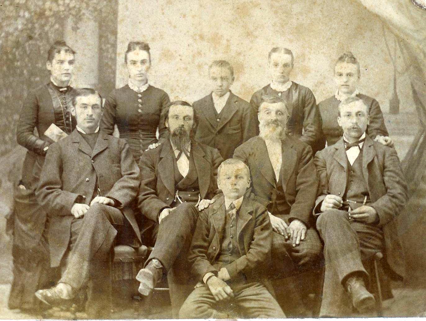 This photograph shows Iowa Inventor John Froelich (middle row, 2nd on left) with his father, Henry, and his 8 siblings. Pictured in the front row: Edwin; Second row: H.J., John (the inventor), Henry Froelich (John's father), Frederick; Pictured in the back row: Kate, Elizabeth, Gottlieb, Martha & Caroline. Henry Froelich immigrated to the United States with his wife, Kathryn, from Bassfield, Germany, in 1847. The family settled in a settlement that became the village of Froelich, Iowa. Content can be used with the following standards: 4th grade SS 4.26 Changes to Agriculture in a lesson on development to agriculture during the late 1800s. For any use other than instructional resources, please check with the organization that owns this item regarding copyright restrictions.