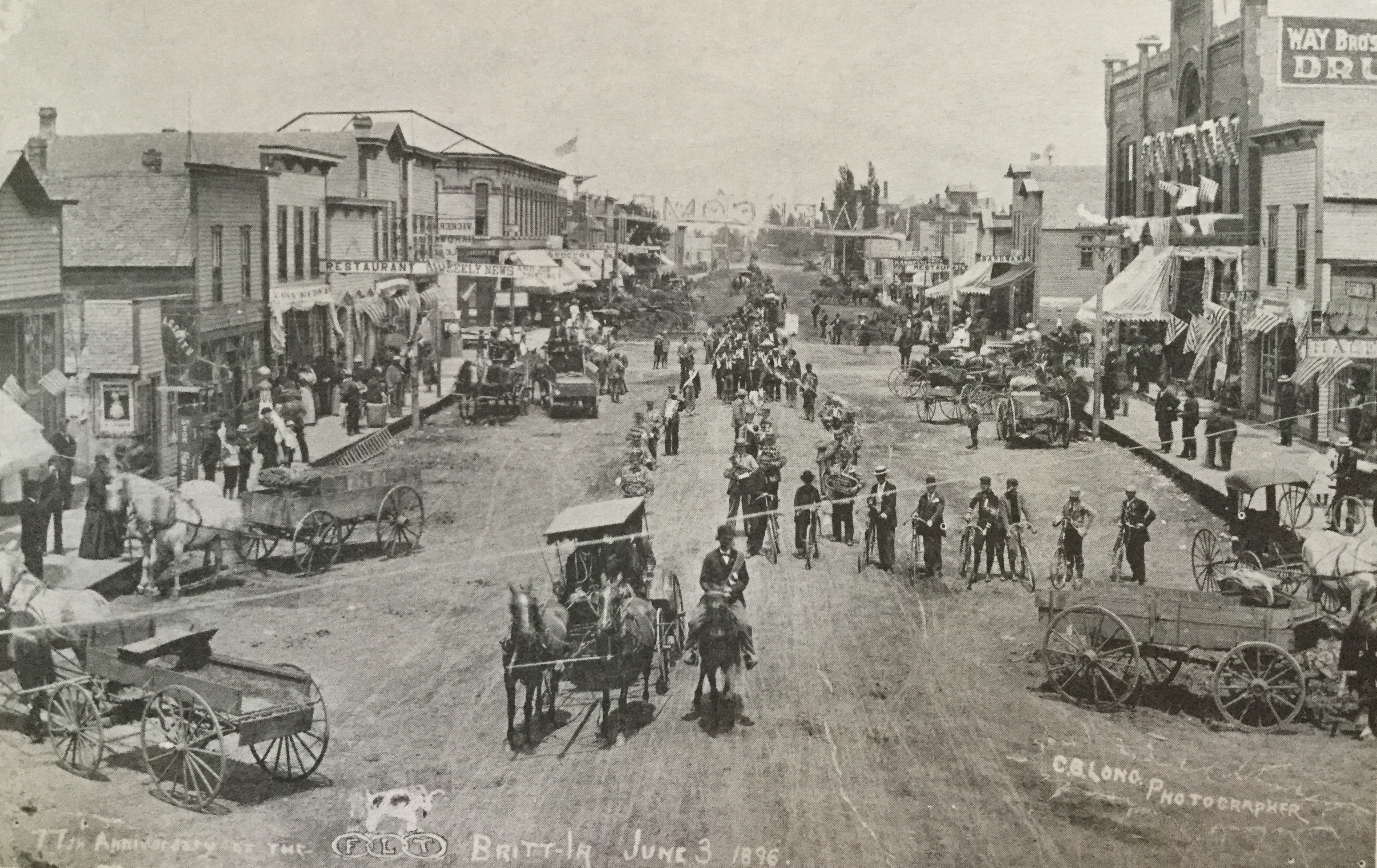 The photo shows the Main Street of Britt, Iowa, in 1896. The photo was taken during a large event which celebrated the 77th Anniversary of the formation of the Independent Order of Odd Fellows, an international fraternal founded in Maryland in 1819. Content can be used with the following standards: 3rd grade SS 3.27 Immigration and Migration and 3rd grade SS 3.28 Cultural Contributions in a lesson on immigrants in Iowa and the contributions they made to the state. For any use other than instructional resources, please check with the organization that owns this item regarding copyright restrictions.