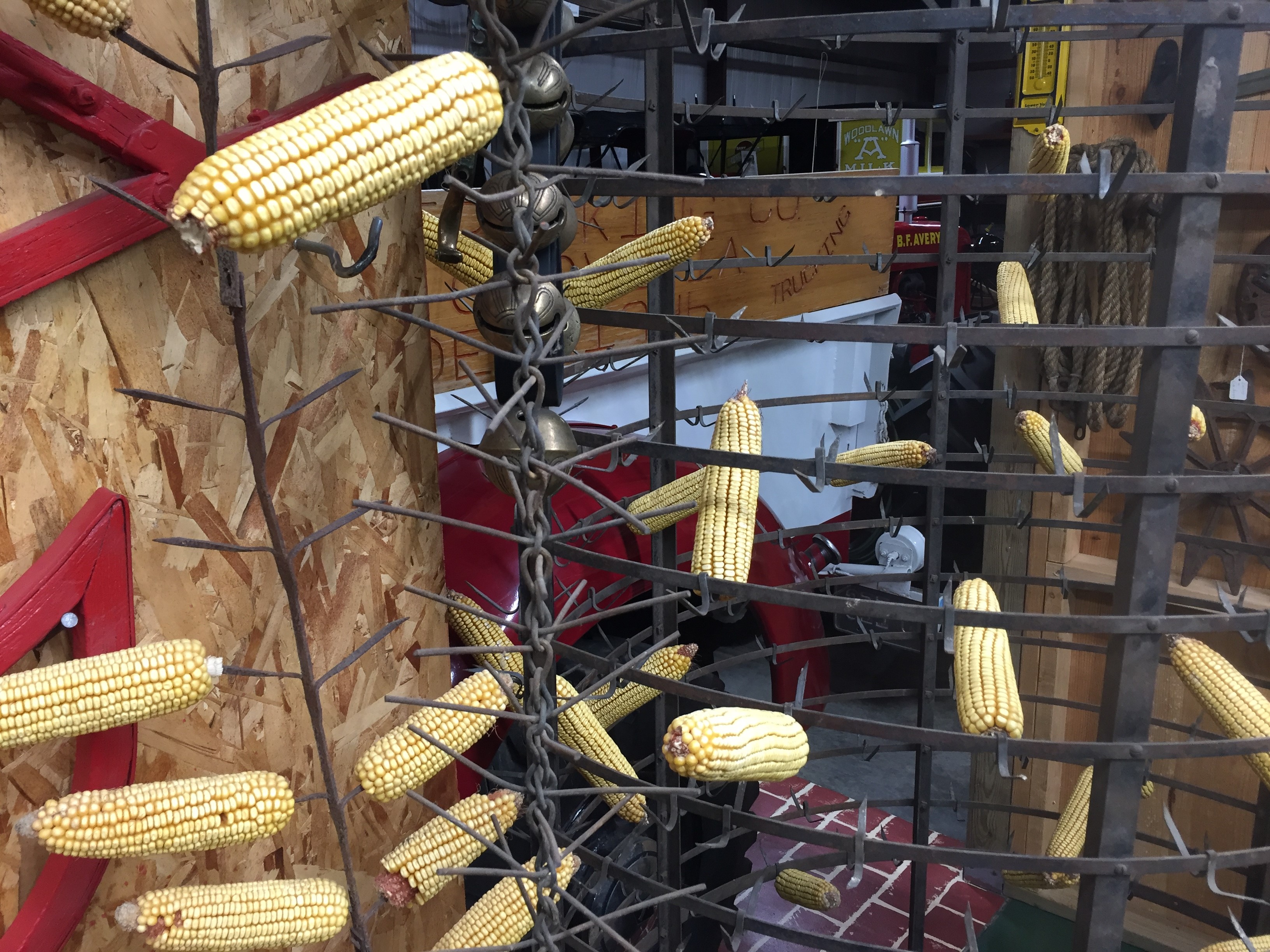 In the early years, all corn was picked by hand. There were special pegs and hooks that were strapped onto the hand to make this easier. Throughout the day, the best ears were saved and put in a box attached to the triple box wagon. These were stored in an unheated upstairs bedroom to dry completely on racks such as pictured. In the spring, a few kernels were shelled off each ear and tested for germination. Those ears with the best germination were completely shelled and those kernels became the seed for next years crop. When corn was picked by hand, progress was slow. A triple box wagon with a bang board was hitched to a team. A well broke team would respond to voice commands so all people could be doing the picking. Sometimes the wife or older children would help with this task. The wagon was filled one ear at a time and driven to the crib and scooped into the crib at noon. After the noon meal, the farmer would return to the field to fill the wagon again in time for evening chores. It was considered exceptional if a person could pick 100 bushel in a day. Content can be used with the following standards: 4th grade SS 4.26 Changes to Agriculture in a lesson on methods of farming used in the early 1900s. For any use other than instructional resources, please check with the organization that owns this item regarding copyright restrictions.