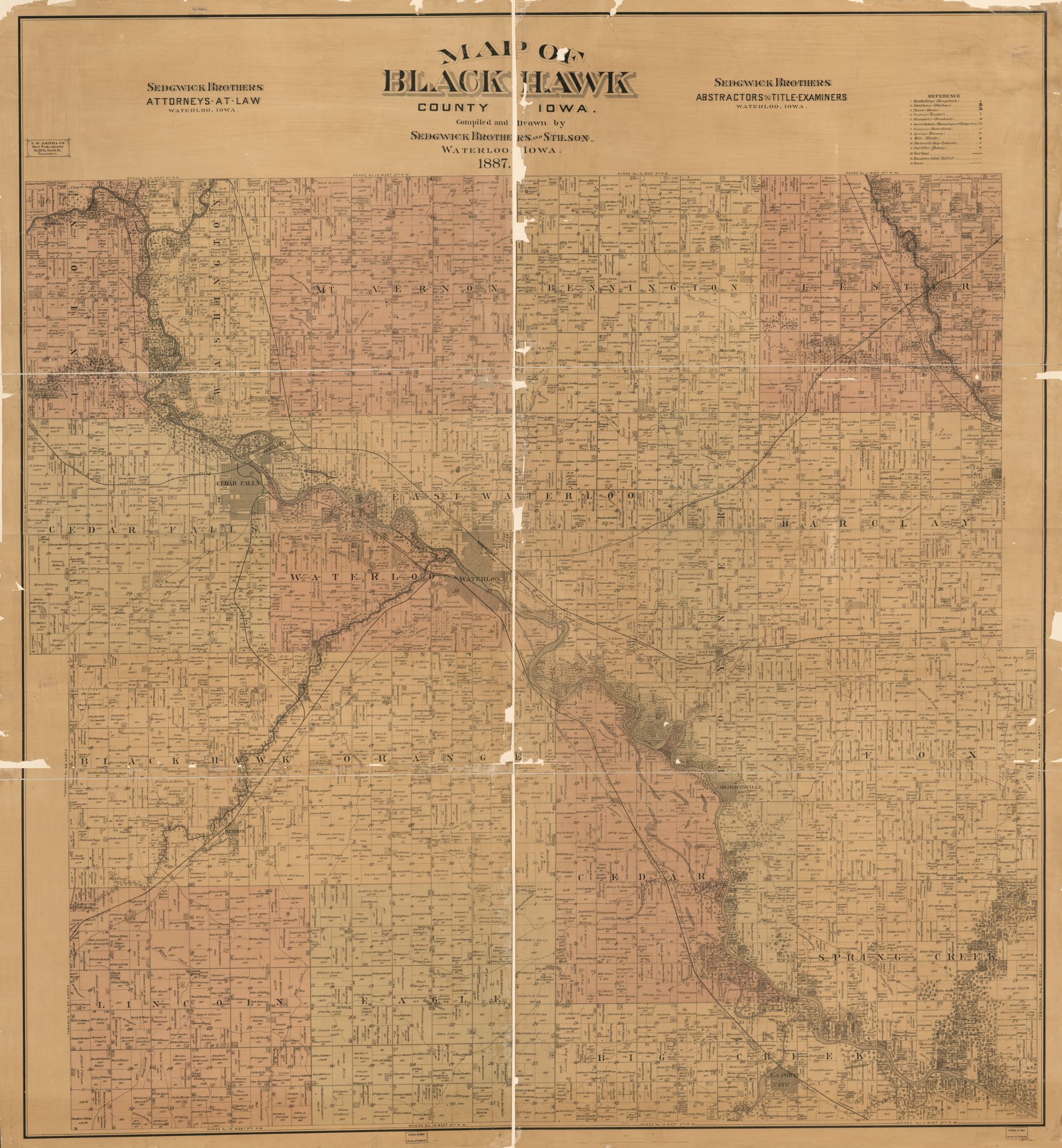 Map of Black Hawk County, Iowa. Content can be used with the following standards: SS-Geo. 9-12.24 Iowans Influence Iowa Environment in a lesson on the establishment and settlement of Iowan towns. For any use other than instructional resources, please check with the organization that owns this item regarding copyright restrictions.