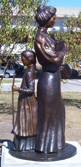 This is a sculpture memorial of Lou Henry Hoover, the wife of former 31st United States President Herbert Hoover. The sculpture is part of a public works art installation project called the Lou Henry Hoover Sculpture Park, located in Waterloo, Iowa. The statues in the Park serve to tell the life of the former First Lady from her birth in Waterloo in 1874 to her death in 1944. After moving to the towns of Whittier and Monterey in California later in her youth, Lou Henry pursued higher education, first at the San Jose Normal School then at Stanford University. It was during her time at Stanford that she met her future husband, Herbert Hoover, who was then a senior upperclassman. Lou Henry was notable for being the only female geology student at Stanford at the time and she graduated with a B.A. in geology in 1898. She married Hoover in 1899 at her family's home in Monterey and then travelled with him to China, where he had a business commision as part of his mining job. While in China, she learned to speak Mandarin Chinese, making her the only First Lady to date to speak an Asian language fluently. After leaving China, she helped her husband administer the relief effort for the Belgian people in the First World War. During her time as First Lady, she became known for participating as a guest speaker in national radio programs and for developing the precursor of the current presidential country retreat of Camp David. In 1944, she died of a heart attack and was buried in Palo Alto, California before being reinterred in West Branch, Iowa after the death of her husband twenty years later. The Lou Henry Hoover Sculpture Park was dedicated in Waterloo in May of 2017. This content can be used with the following resources: SS-WH.9-12.26: Iowans Influence World History SS-US.9-12.2: Iowans Influence US History This content can be used to educate students on the life and impact of Lou Henry Hoover. The former First Lady was born in Iowa and went on to have an enormous impact on world history and has left a legacy as a remarkable woman of the twentieth century. Learning about her life can inspire Iowa students and inform them about the influence that Iowans can have on history. For any use other than instructional resources, please check with the organization that owns this item for any copyright restrictions.